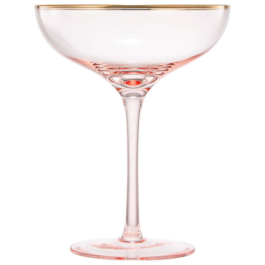 Gorgeous Gilded Pink Rim Coupe - 2 Martini/Cocktail Glasses
