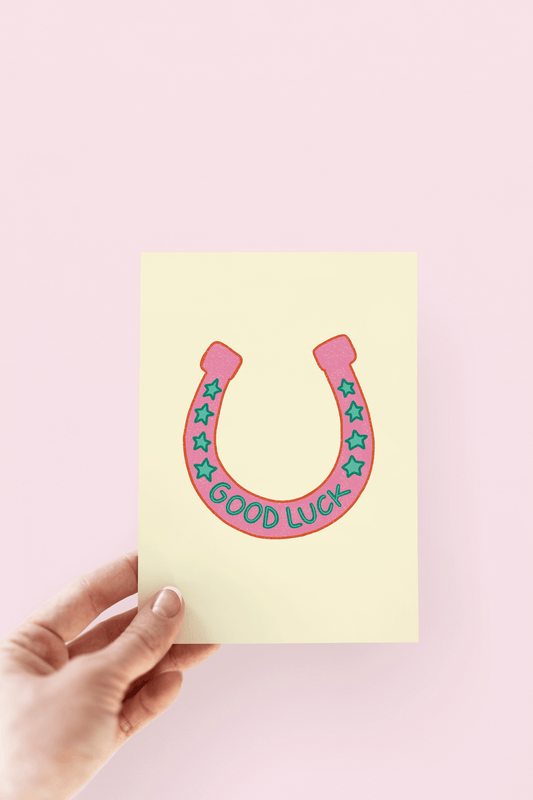 Good Luck Pink Horseshoe Congrats Best Wishes Greeting Card