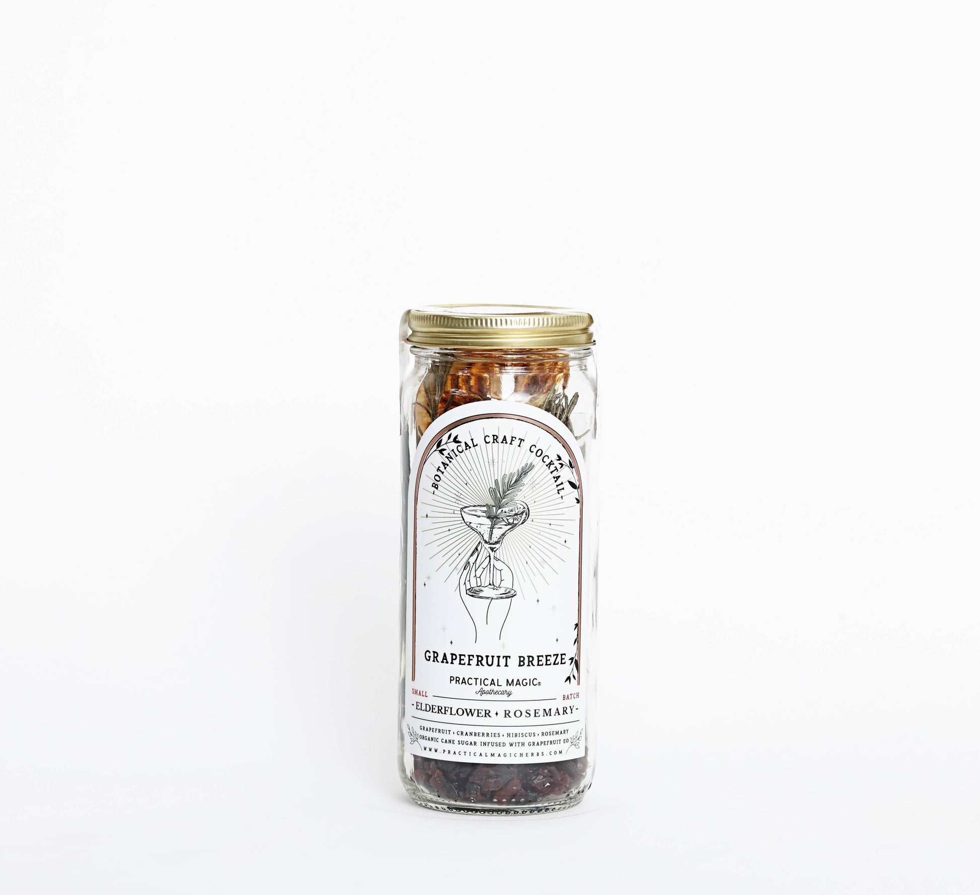 Grapefruit Breeze Cocktail / Mocktail Drink Kit in Glass Jar. Elderflower and Rosemary give this Grapefruit Seabreeze a unique and healthy twist. It's the perfect summer patio cocktail! Plus, both of these herbs are anti-inflammatory so maybe less of a hangover too? Ha! Just add vodka or gin or spirit of choice and let sit for 1-3 days to make delicious, infused craft cocktails.