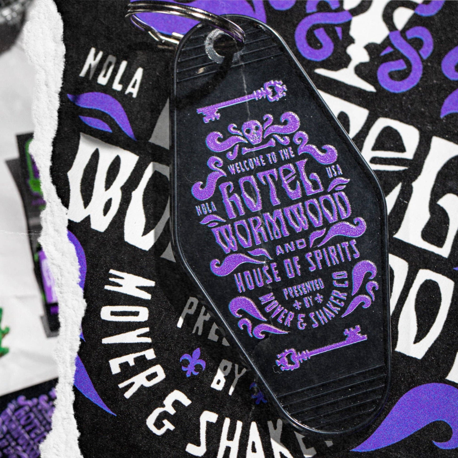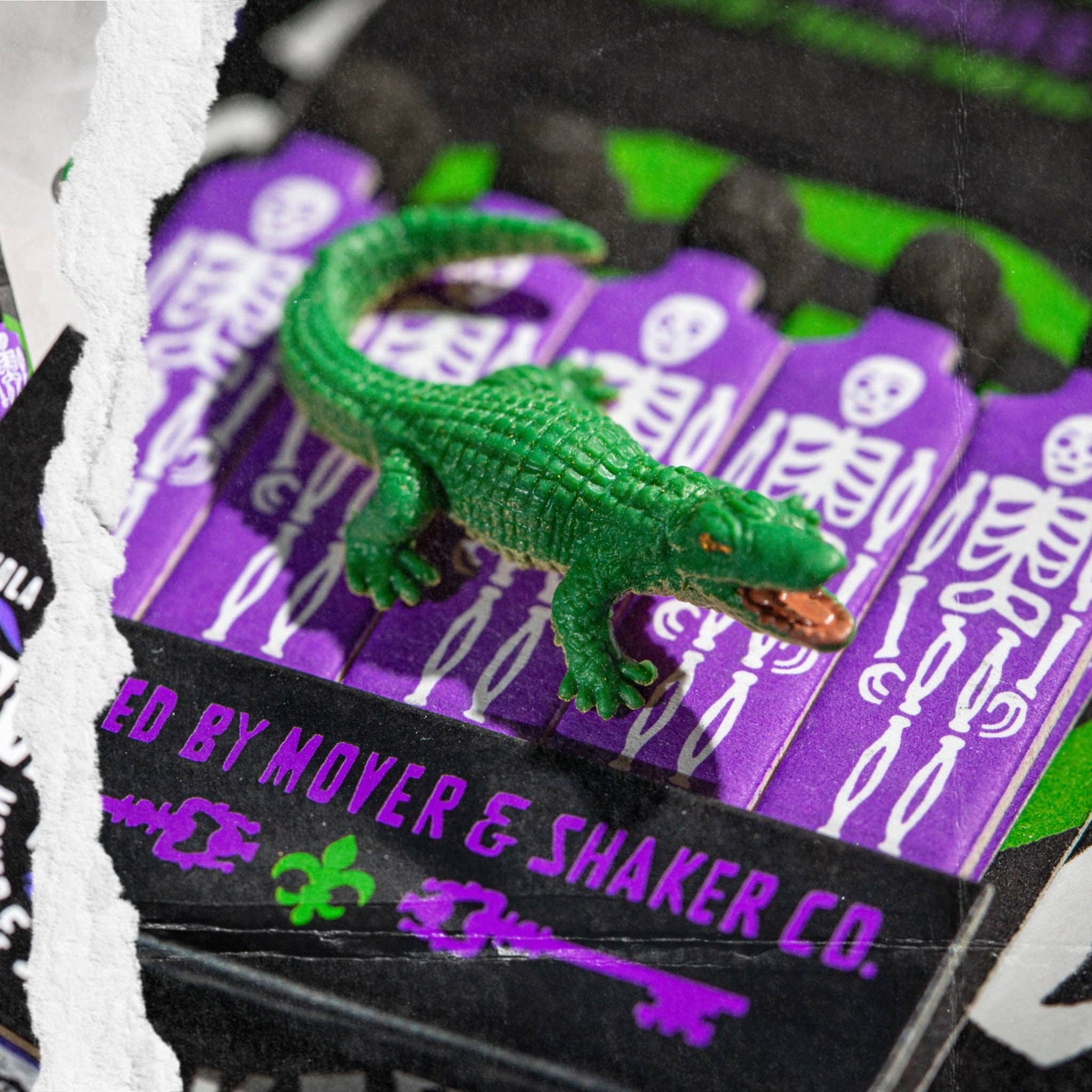 Includes: ONE Printed Glass, Fleur de Lis Enamel Pin, Hotel Wormwood Key Tag, Voodoo Skeleton Matchbook, Miniature Alligator, One of three local NOLA cocktail recipes, 5" x 6" x 5" Custom Print Box. Cocktail recipes courtesy of Erika Flowers, Jeri Guilford and Touré Folkes. Hotel Wormwood concept by Nick Hogan and Frank Norton.