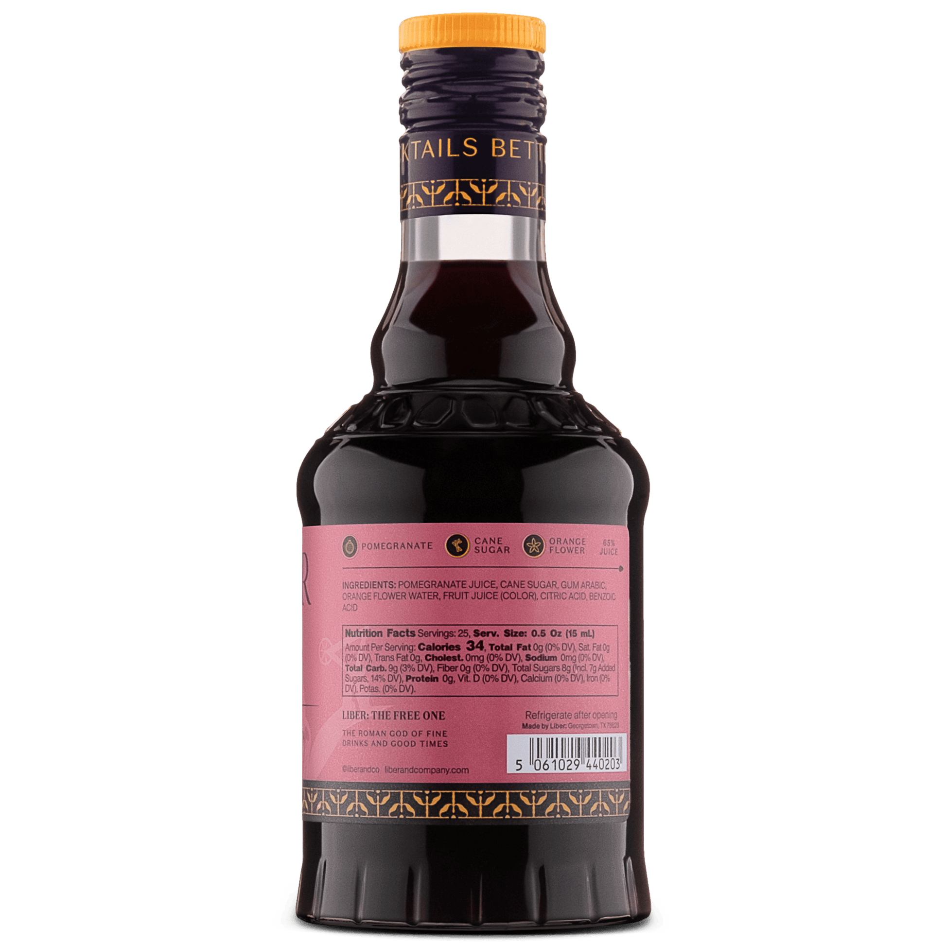Real Grenadine is authentic in its ingredients and unrivaled in its flavor, making it an ideal cocktail mixer. The process of cold-processing ripe pomegranates retains the fruit’s naturally fresh flavors and rich color which are essential for a perfect cocktail. Added to this mix are pure cane sugar and orange blossom water that provide this syrup with great balance and an elegant floral aroma.