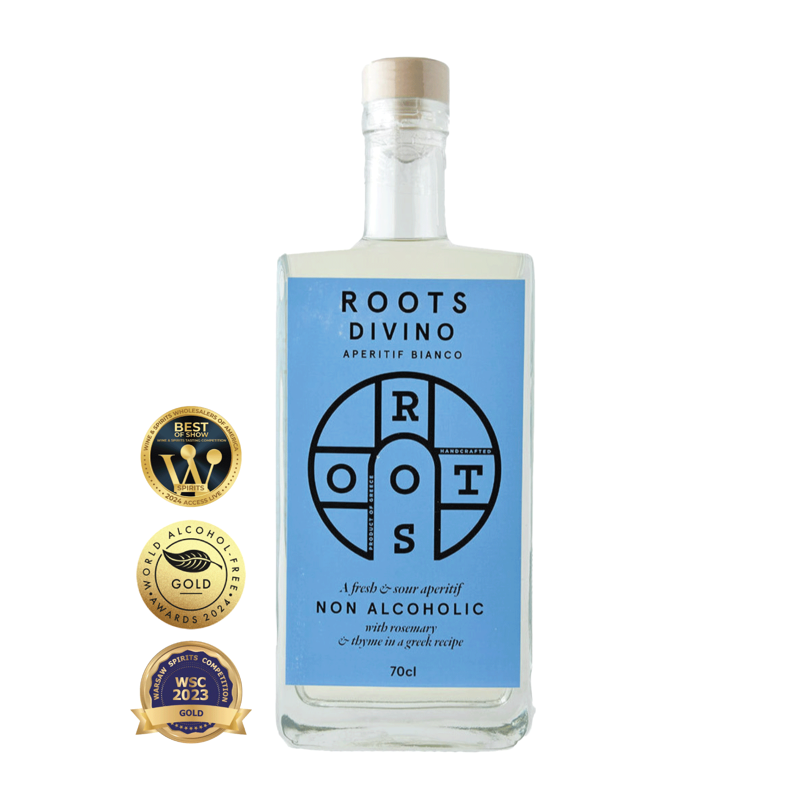 Best in Show Wines And Spirits Wholesale Association of the USA, Las Vegas 2024 The only wine based zero proof vermouth. Multiple gold awards. Going back to the roots of ancient herbal remedies, we rediscover rosemary, thyme & wormwood in a fresh & sour contemporary “bianco”aperitif from Greece. Roots Divino Bianco has sophisticated flavors and aromas of rosemary, thyme & lemon with wormwood. Made on the greek island of Lesvos, with the highest quality and natural ingredients from the Aegean sea. ROOTS DIVINO are non-alcoholic aperitifs based on wine (di vino). The halo shape on the label symbolizes the “divine” effect of enjoying a drinking occasion without the alcohol.